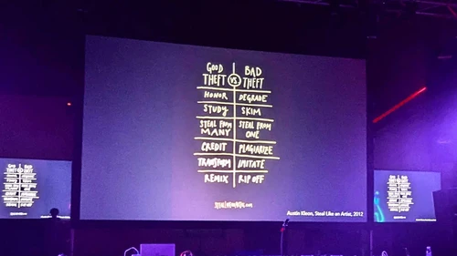 她引用艺术家兼作家Austin Kleon的观点,强调“模仿不是恭维,转化才是恭维:借用你所欣赏的内容,并将其转变为新作品”。