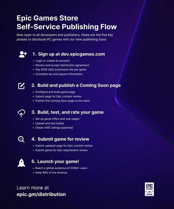 现在,游戏开发者可以直接在 Epic Games Store 上自行发布自己的游戏作品。