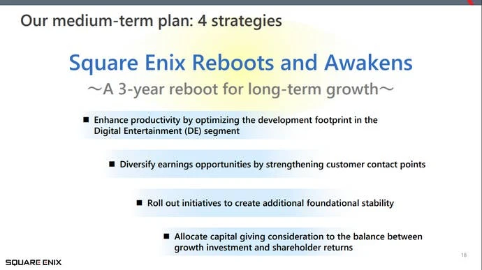 Square Enix还公布了其为期三年的中期运营计划的最新进展。“在2025财年,我们对国内工作室的开发组织架构进行了根本姓的重塑,”报告指出。